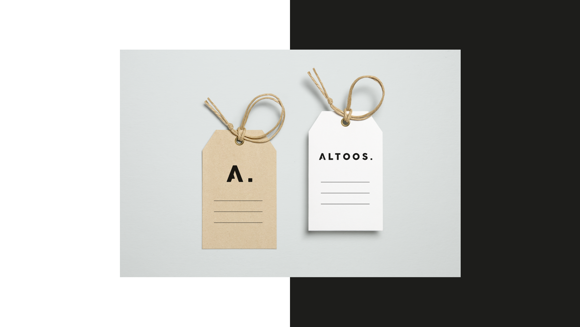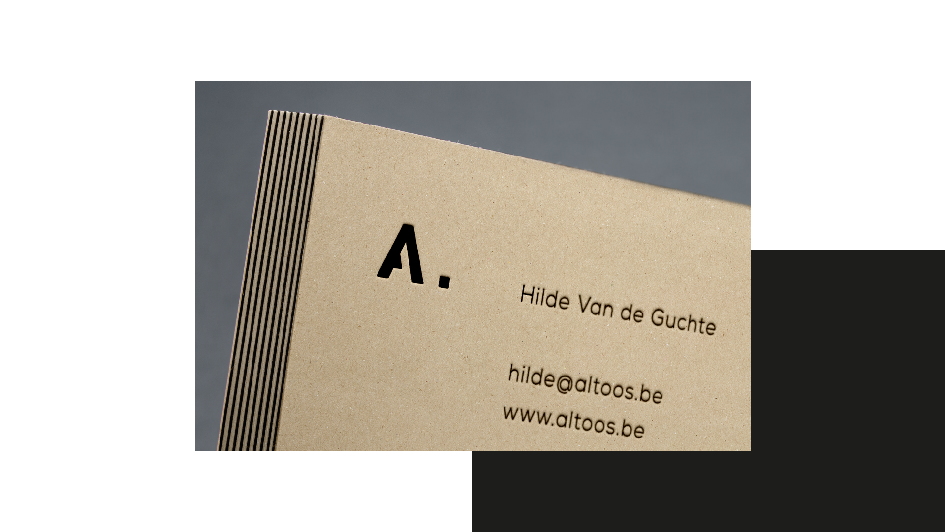 Logodesign en branding voor Altoos. Een upcycling project dat meubels en andere interieurstukken een nieuwe leven geeft. Op deze manier proberen zij de wegwerpmaatschappij tegen te gaan. Voor de visitekaartjes werd gekozen voor een kraftkarton met zwarte letterpress. Een knipoog naar het vakmanschap en de ambachtelijke manier waarop de stukken opgelapt worden.