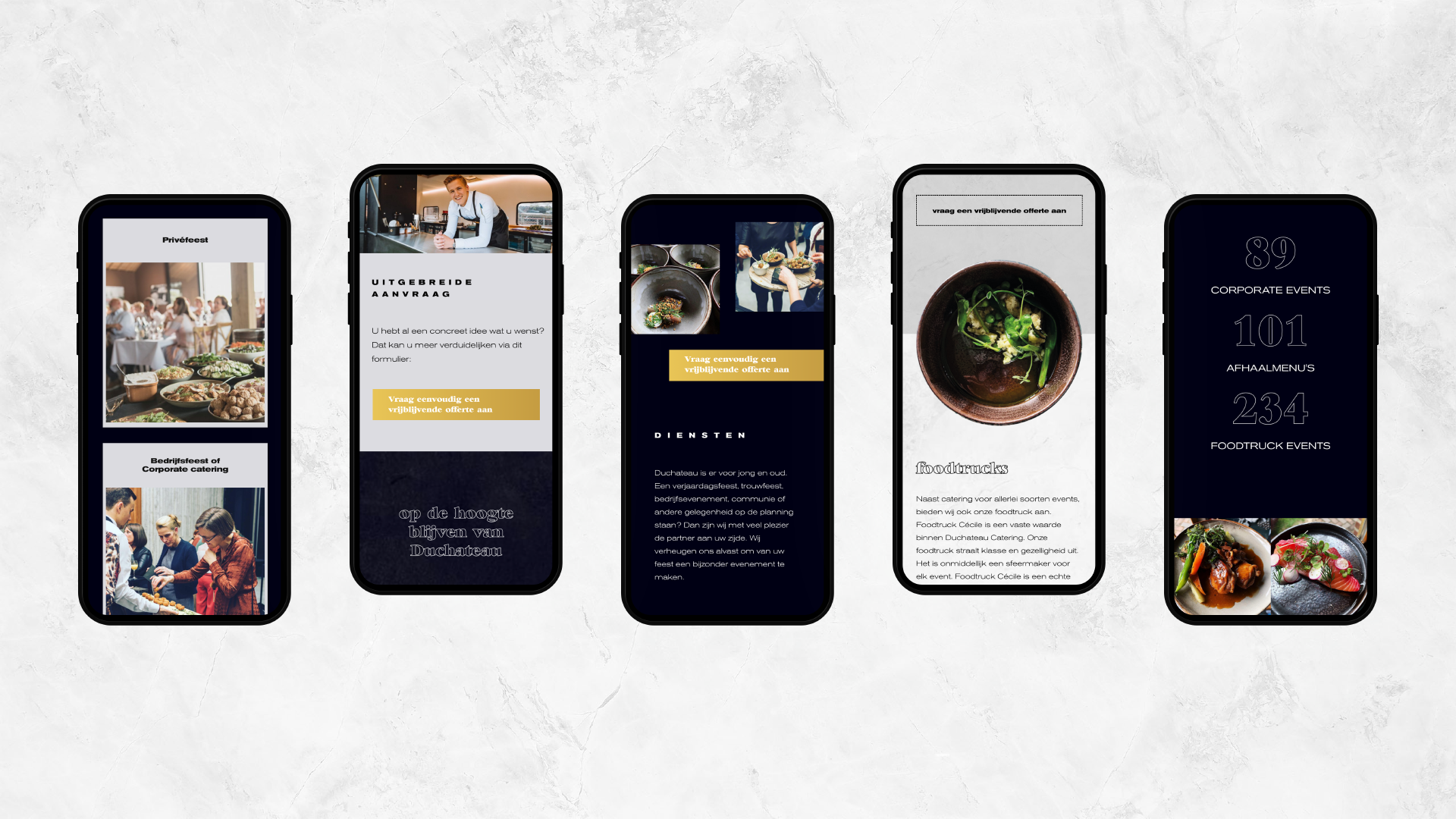 Heb je een cateraar nodig voor jouw feest? Met hun nieuwe website & logo upgrade, zit de algemene look & feel van Duchateau helemaal goed. Net zoals de gerechten die ze serveren!